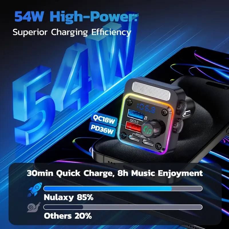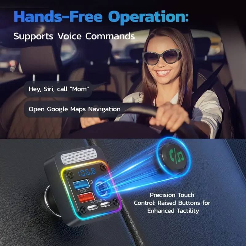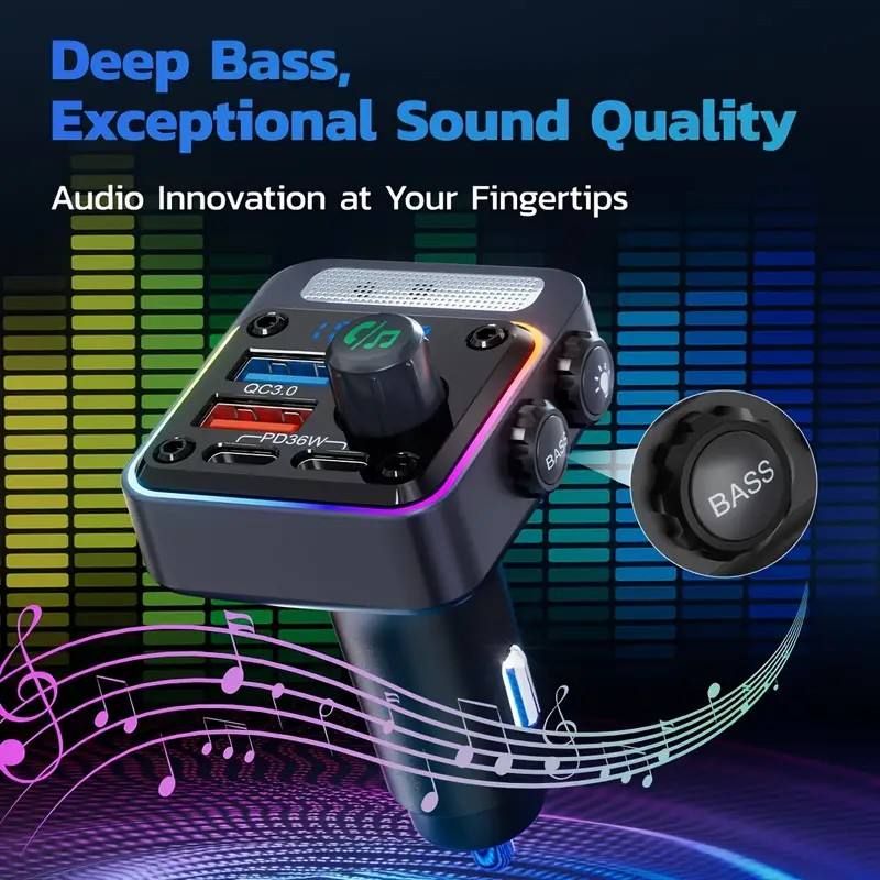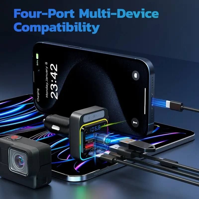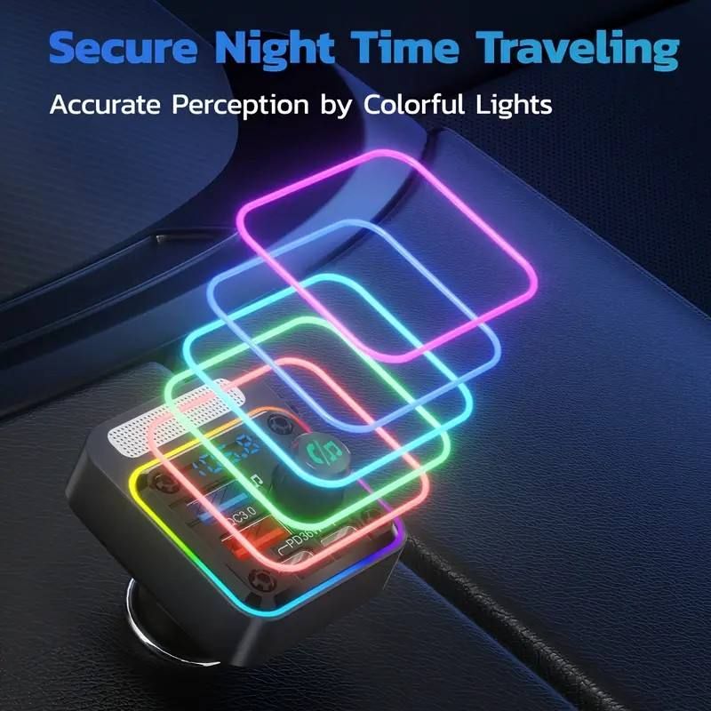 Upgrade your drive with the Ultimate Car Charger Pro – where high-speed charging meets high-quality music! This compact powerhouse lets you charge four devices at once, stream crystal-clear tunes via FM, and light up your space with dynamic RGB lights.