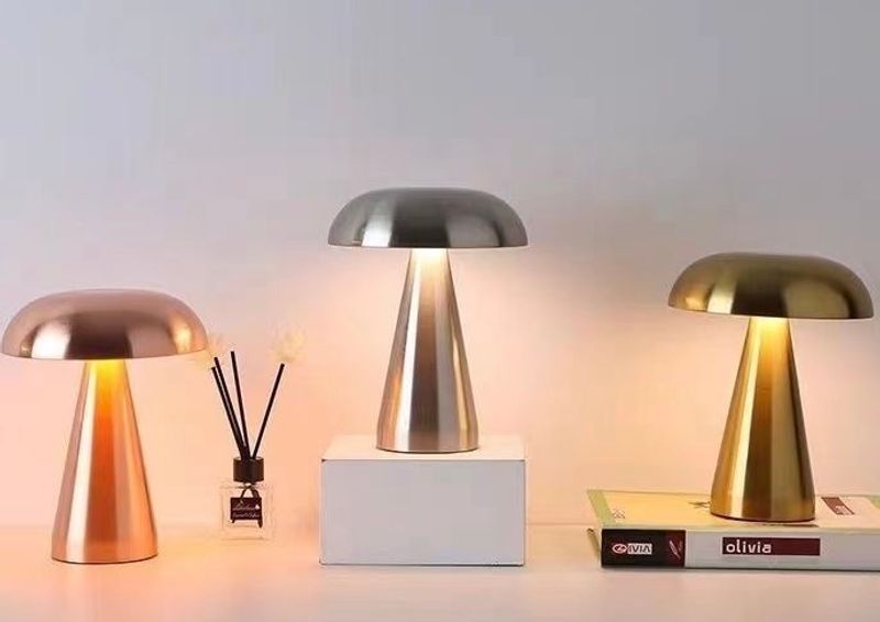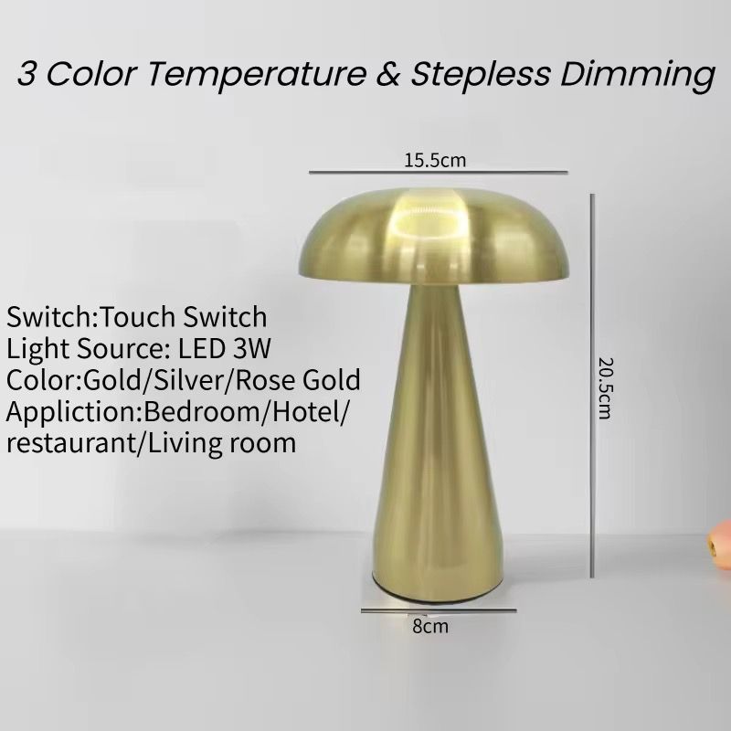 Hotsale Nordic Gold Metal Bar Mushroom Shape Table Lamps Modern Home Decor Touch Control Cordless Lamp with Touch 3 Colors Light