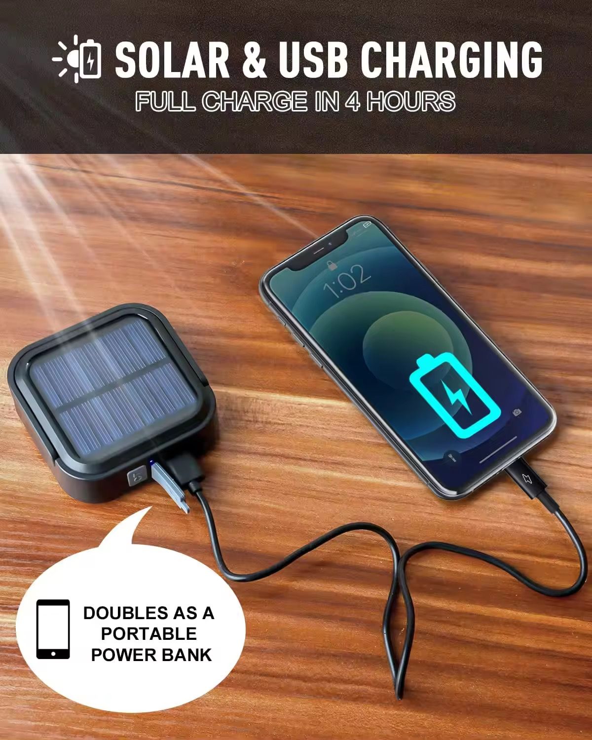 Never be left in the dark—this Solar-Powered Power Bank with LED Light keeps you powered and illuminated, anywhere, anytime! Whether you're camping, working, or in an emergency, this all-in-one device delivers 20 hours of light on a full solar charge and adapts to all your needs.